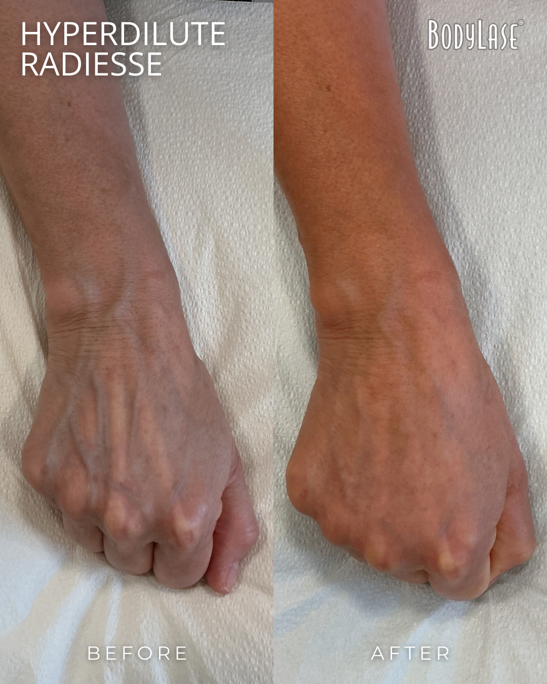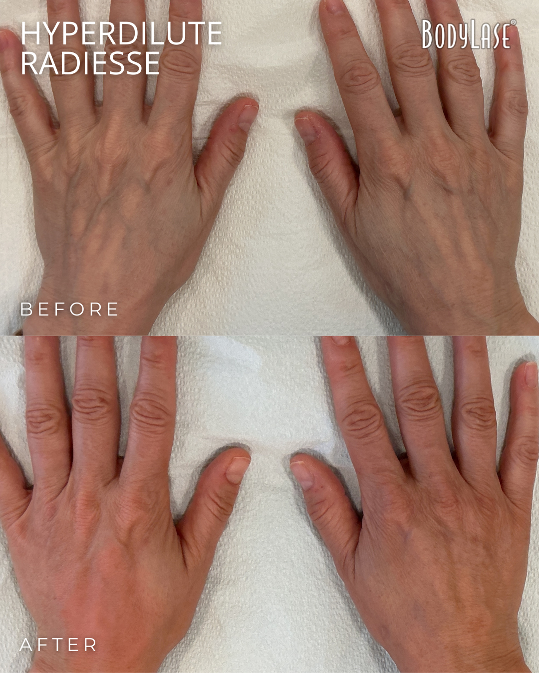 Think of traditional Radiesse as a filler for volume and Hyperdilute Radiesse as a treatment for skin quality and firmness. Both options deliver long-lasting, effective results, and your BodyLase provider will help you decide which is the best fit for your goals.